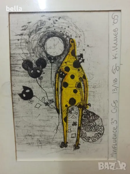 Картина на Калоян Илиев или по-известен в средите като Кокимото.Вдъхновен от японската култура, което се вижда и от артистичното му име - Кокимото и с огромна симпатия към котките, Калоян Илиев използва махащата котка, известен японски символ и много добре ги пресъздава в работите си.Изобразявайки махащата котка "Кокимото" на различни носители и в различни среди, той ѝ придава съвременен вид, а тя се превръща в един от основните типажи в творчеството му.Картината е една от серията му Котки ,размер заедно с рамката 34/26 см ,всеки може да си я прерамкира по-добре и по свой вкус.Цена 500 лв