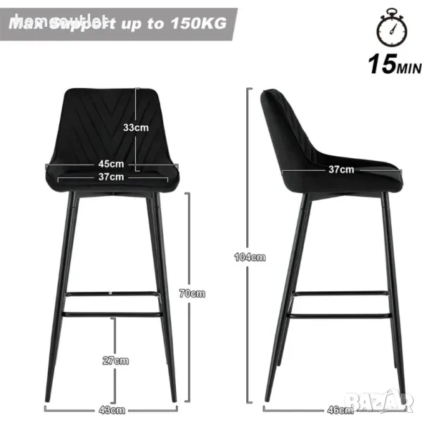 Основата на този бар стол е изработена от висококачествен метал, използвайки стабилността на заострената структура, за да проектира формата на стола.