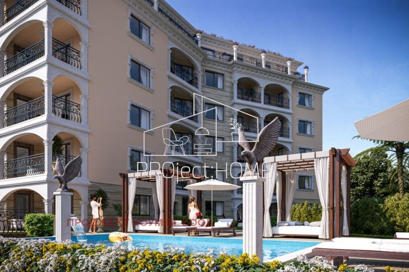 PRОject HOME/ Проджект хоум Ви представя двустаен апартамент в луксозен затворен комплекс на първа линия в гр. Несебър. Апартамента се състои от антре, просторна трапезария с кухненска част, спалня, баня с тоалетна и балкон.