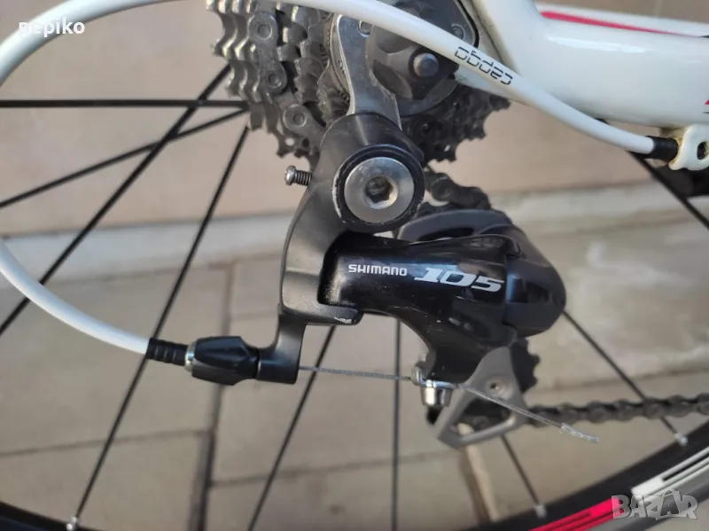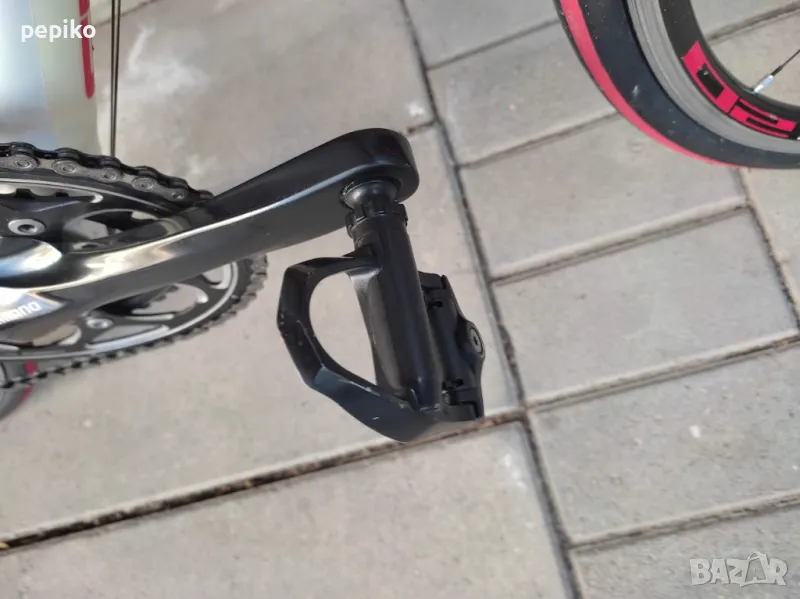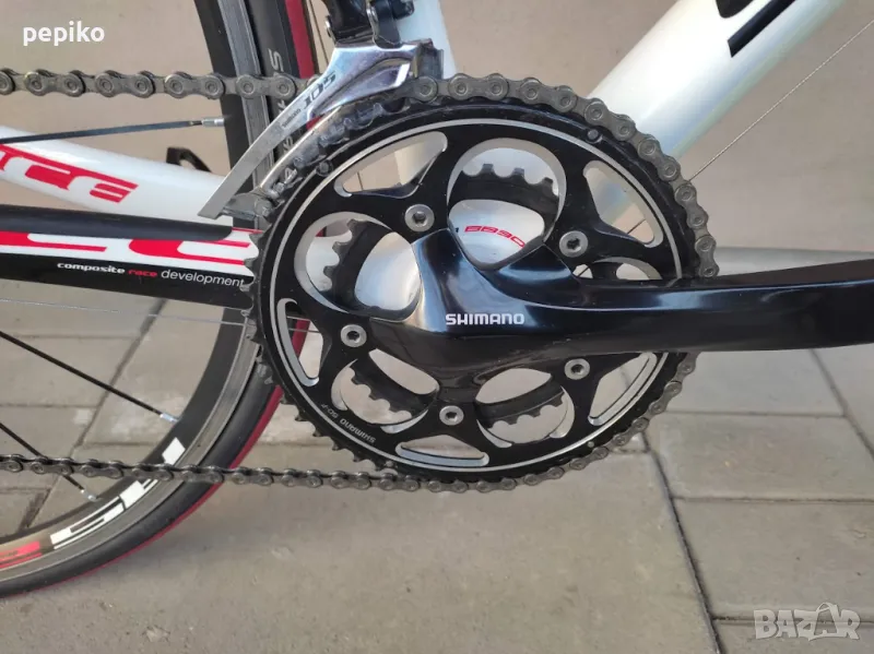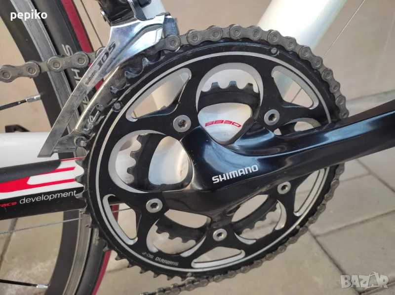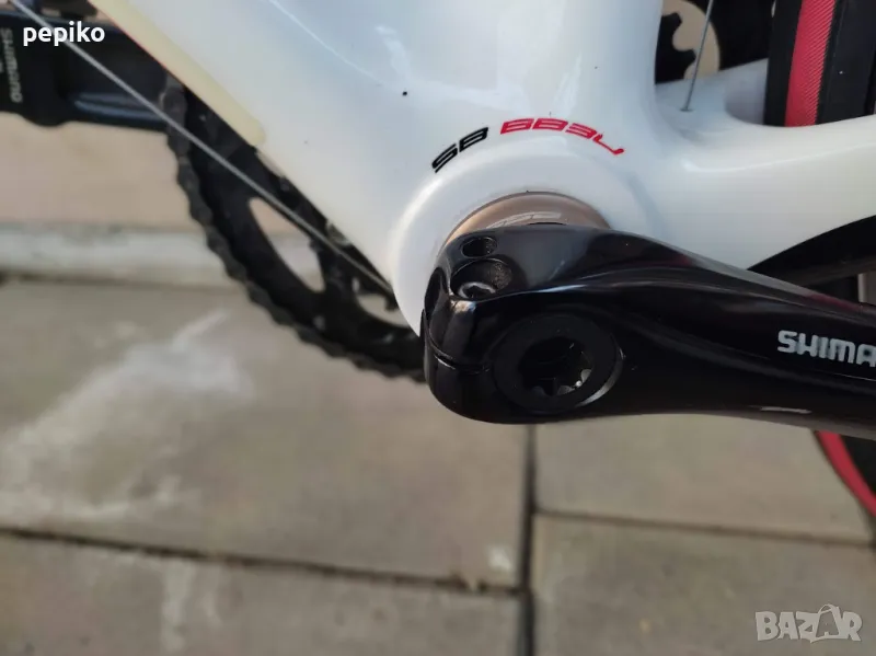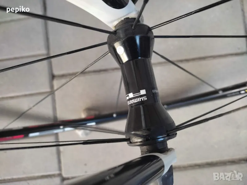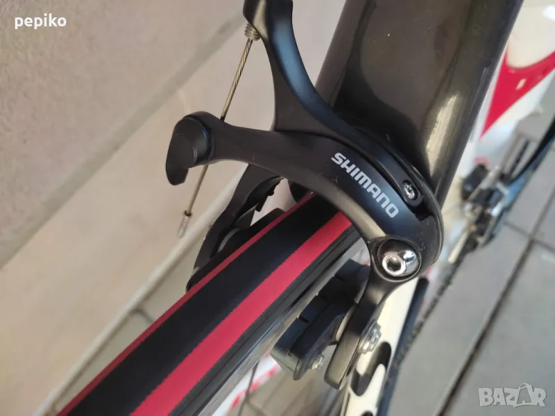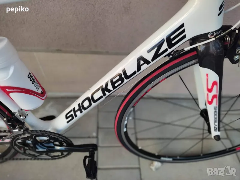 Употребяван шосеен карбонов велосипед SHOCKBLAZE CARBON 28 цола,супер лека карбонова рамка 28 цола с 20 скорости,фиксирани превключватели SHIMANO 105,курбели SHIMANO 105,алуминиеви педали с автомати EXUSTAR,преден отклонител SHIMANO 105,заден отклонител SHIMANO 105,задни венци SHIMANO 105,предна и задна алуминиеви главини с автомати SHIMANO RS,карбоново колче,спортна седалка на релси,алуминиеви двойностенни усилени капли SHIMANO,емайлирани черни плоски спици,предна и задна спирачка SHIMANO убрейк,гуми с безшумен грайфер SCHWALBE LUGANO 700 X 23,размер на рамката 51 х 55 см.тегло 8,9 кг.