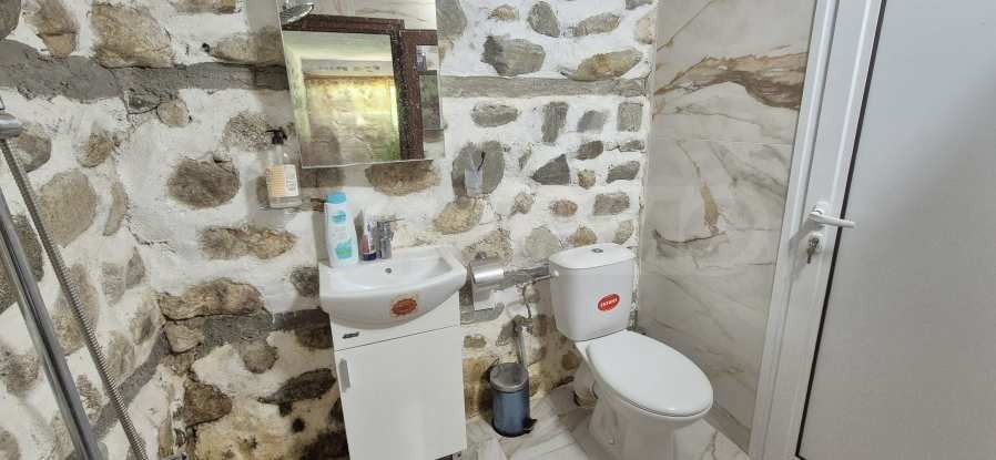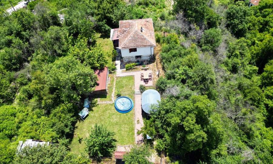 Къща: разгъната застроена площ 122 кв.м. , изградена от каменна зидария (първи етаж) и тухла с външна изолация (втори етаж)