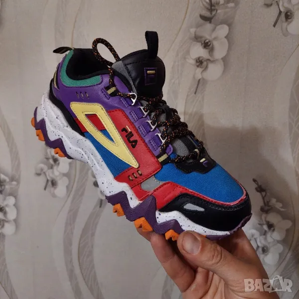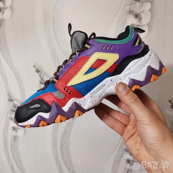 Тези удобни маратонки се отличават със смела геометрична шарка с ретро цветове от 90-те години върху горната част от кожа/текстил.