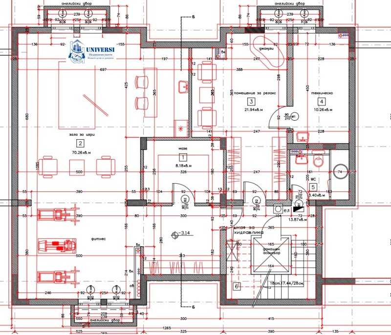 На сутеренното ниво, което е предвидено за спа и релакс зона, с налични помещения, обособени за джакузи, парна баня, сауна, масажно, фитнес, игрална зала с мокър бар и санитарни възли има изградена вентилационна система.