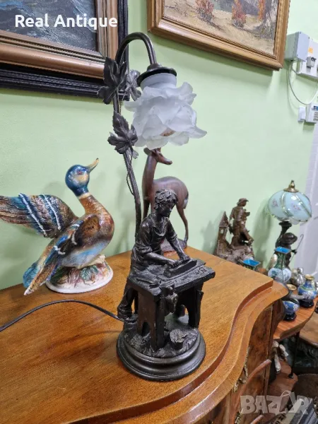 Продавам прекрасна много красива антикварна фигурална настолна лампа в перфектно състояние без забележки отлично работеща. Височина 53 см. Чудесно допълнение към интериора на Вашия дом офис вила ресторант хотел. Подходяща и за подарък. Работя с всички куриери. Отговарям бързо.
