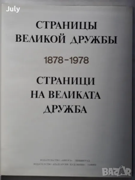 Юбилеен албум за стогодишнината от освобождението на България от османско иго, съвместно издание на "Аврора" - Ленинград и "Български художник"- София, твърди корици, 195 репродукции, от които 110 са цветни и на известни български и руски художници и скулптори,