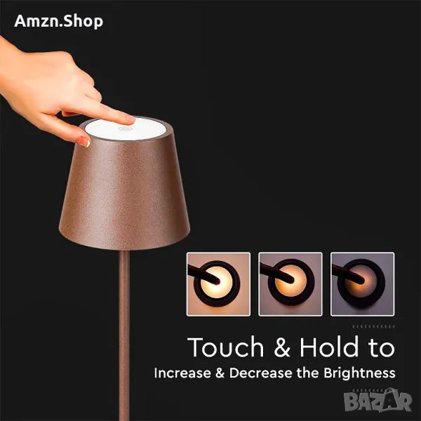 Димиране със сензорно активиране: включете и изключете светлината чрез интуитивно сензорно управление в горната част на лампата. Натиснете и задръжте същия бутон, можете да регулирате интензитета на светлината много точно от максимум до минимум.