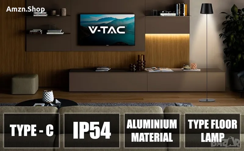V-TAC LED подова лампа безжична акумулаторна регулируема височина лампион трапезна лампа