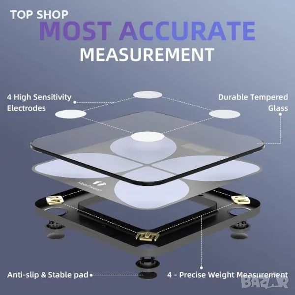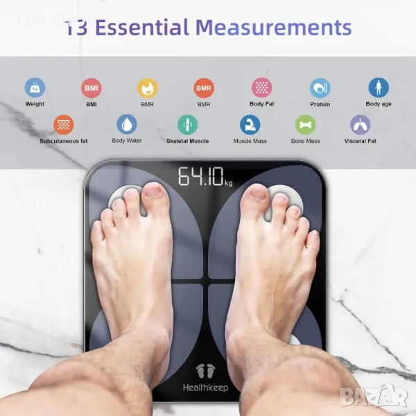 Изключителна поверителност и гъвкавост за потребителя: За разлика от други безжични везни с ограничени потребителски акаунти и потенциални уязвимости на данните, нашата везна с активиран Bluetooth предлага неограничени потребителски профили. Нашата революционна технология за свързване 1 към 1 поддържа вашите данни безопасни и поверителни. Вашето уелнес пътуване е лично и нашият размер гарантира, че то ще остане такова.