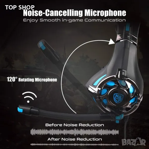 ШУМОИЗОЛИРАЩ МИКРОФОН - Прецизно изработеният микрофон на слушалките може да предаде отлично качество на комуникация със своята първокласна функция за шумопотискане и да улавя звуци с прекрасна чувствителност за премахване на шума, което ви позволява изрично да предавате или получавате информация, докато сте в игра. Дълъг гъвкав дизайн на микрофона, много удобен за регулиране на ъгъла на микрофона.