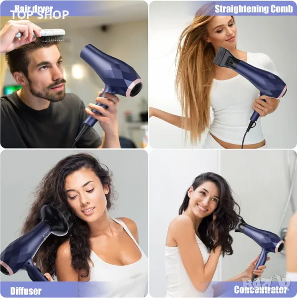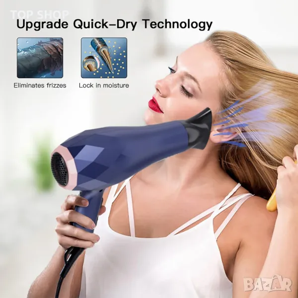 ❤️【Технология с отрицателни йони и дълбока защита от увреждане на косата】 - Нашите сешоари с технология с отрицателни йони предпазват косата ви от изсушаване, намаляват увреждането на протеините, предотвратяват топлинните увреждания, оставяйки косата ви копринена и гладка, осигурявайки ви перфектната грижа за косата и усещане за изсушаване. frizz-control също засилва блясъка на вашата коса. Целевите потребители на нашите продукти са на възраст над 12 години.
