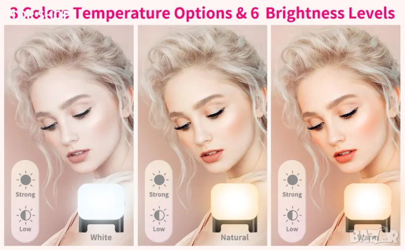 【3 режима на запълваща светлина, 6 нива на яркост】: Тази подвижна запълваща светлина с 3 режима на осветяване: бяло, топло, естествено, всеки режим има 2 регулируеми яркости. Натиснете продължително, за да отворите запълващата светлина, след което натиснете кратко, за да регулирате нивото на яркост. Перфектно димируемо осветление, за да премахнете всички сенки, които не харесвате! Брилянтно очертаващо лицето ви и подчертаващо детайлите.