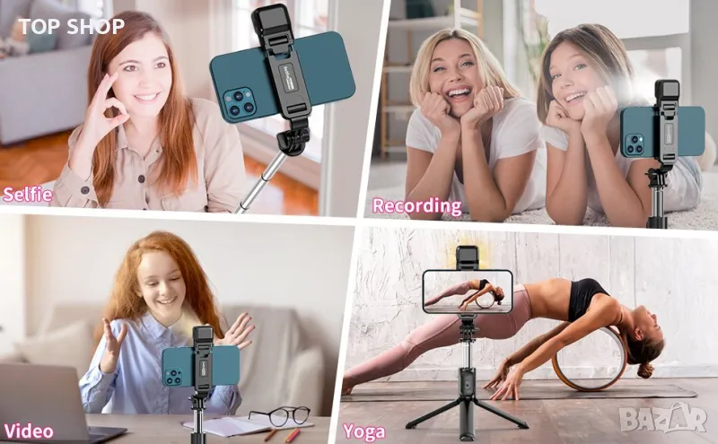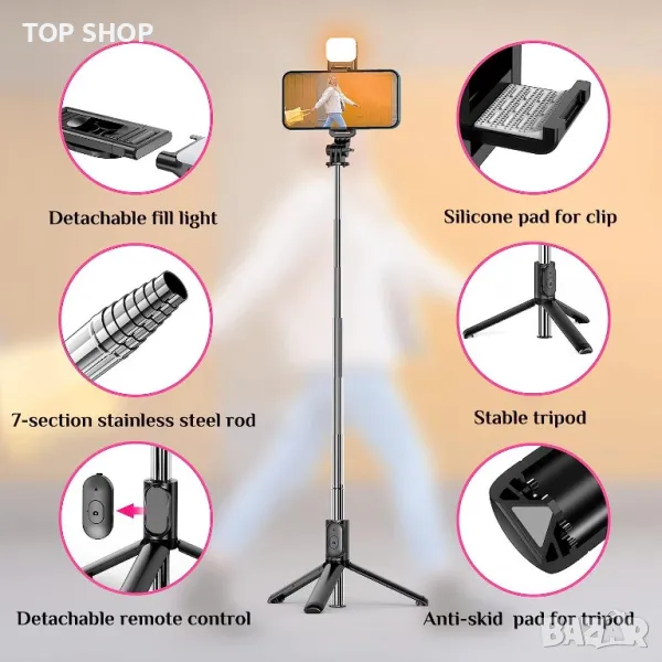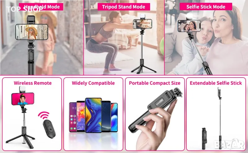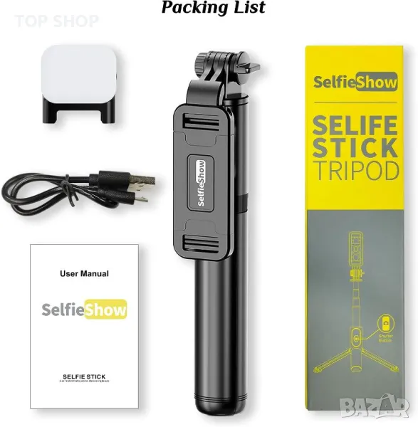 Трипод- селфи стик с акумулаторна лампа и дистанционно от Selfie Show 104 смт Selfie Show