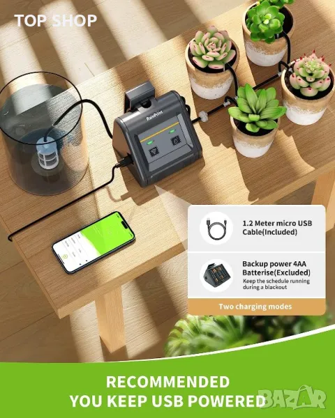 【Универсалност】Приложението Rainpoint може да добавя множество членове на семейството и да се ангажира, позволявайки на семействата да управляват съвместно - не се тревожете за повторно поливане. Настройка на ръчно или отложено поливане - поливайте само колкото ви е необходимо. 2 режима на захранване (батерия или USB кабел) - осигурява дълготраен живот при едновременно използване.