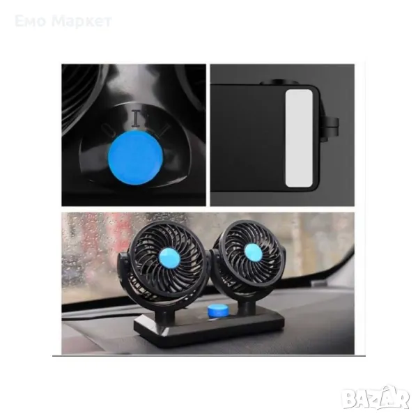 Високоефективен автомобилен вентилатор с двойни перки, осигуряващ мощно и равномерно охлаждане.