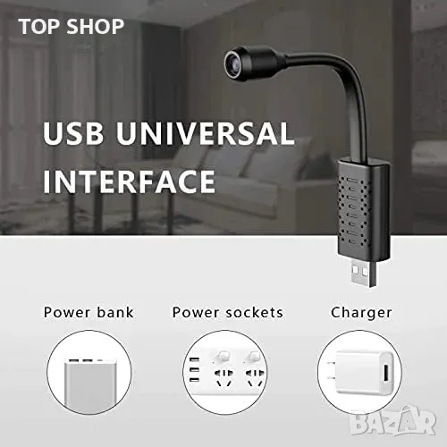 Лесен за използване: Просто го включете и камерата ще започне да работи. Камерата за сигурност поддържа Wi-Fi дистанционно гледане, запис на видеоклипове и правене на снимки чрез безплатно мобилно приложение. Plug and play универсален USB интерфейс.