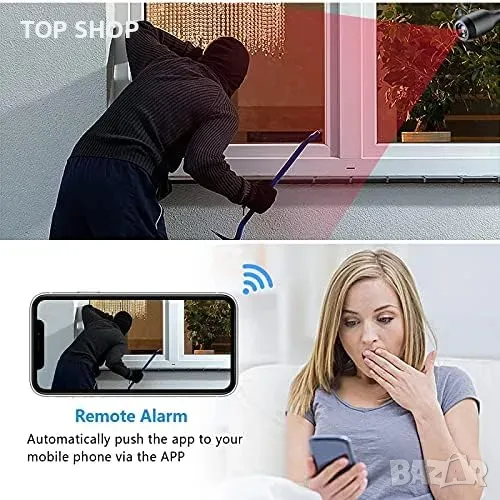 Wi-Fi шпионска камера: зона за активиране и време за активиране с възможност за персонализиране. Дистанционни push известия в реално време към приложението. Тази охранителна камера е подходяща само за 2,4 GHz безжични Wi-Fi рутери и не поддържа 5 GHz.