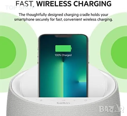 БЪРЗО БЕЗЖИЧНО ЗАРЕДЯВАНЕ: SoundForm Elite включва интегрирано бързо безжично зареждане за iPhone при 7,5 W, Samsung при 9 W и Google при 10 W. Технологията за премахване на вибрациите в високоговорителя гарантира, че вашето устройство се зарежда стабилно без прекъсване.