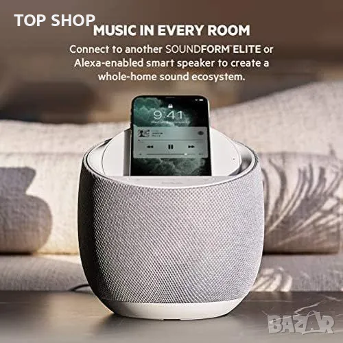 МУЗИКА ВЪВ ВСЯКА СТАЯ: Интелигентният високоговорител Belkin SoundForm Elite ви позволява да създадете аудио изживяване за целия дом и възпроизвежда музика в няколко стаи едновременно.