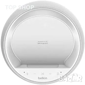 Belkin SOUNDFORM Elite Hi-Fi Smart Speaker + Безжично зарядно устройство (Alexa Voice-Controlled Bluetooth Speaker) Звукова технология от Devialet, Бързо безжично зареждане за iPhone, Samsung Galaxy и други - бял