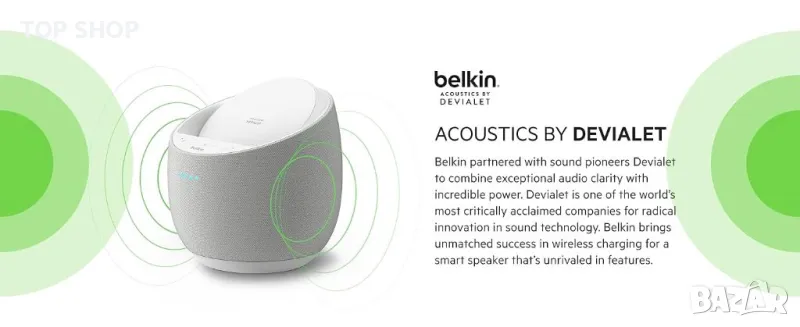 ВИСОКОКАЧЕСТВЕН ЗВУК: С високоговорителя Belkin SoundForm Elite можете да се наслаждавате на любимата си музика с превъзходно качество на звука. Този интелигентен високоговорител разполага с пълен резонансен бас и кристално чисти тонове за наистина висококачествено аудио изживяване.