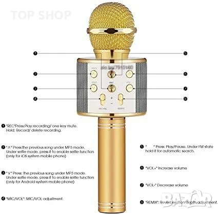 ♫ Мултифункционалният микрофон се различава от конвенционалния микрофон. Това не е само микрофон, но и радио, шумозаглушител и Bluetooth плейър. Има три различни вида гласове, от които да избирате. Вие сте гласът на възрастните хора, гласът на децата и оригиналният глас. Той съчетава двата елемента на плейъра и усилвателя. Той може да възпроизвежда песни, докато пее и се свързва чрез Bluetooth. Пуснете гласа си през микрофона и пейте любимите си песни по всяко време и навсякъде.