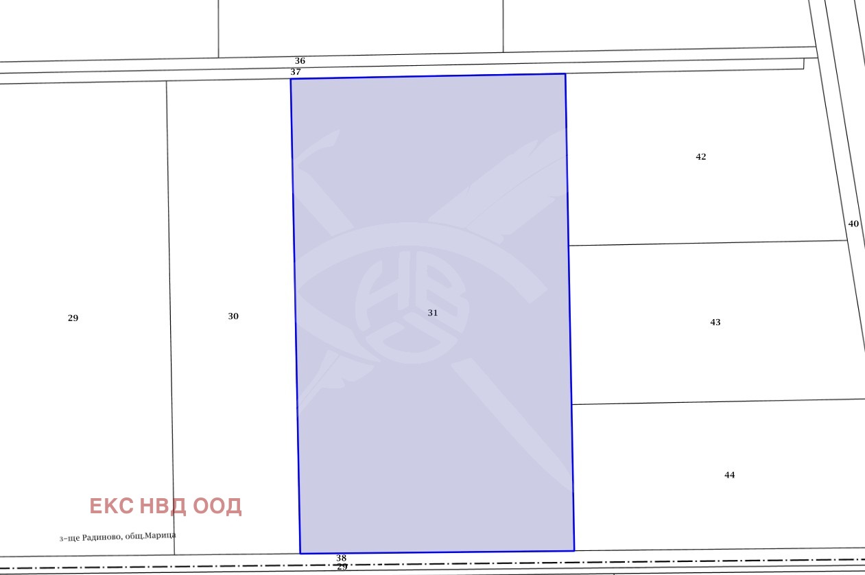 Компания X представя на Вашето внимание поземлен имот, намиращ се в с. Радиново.