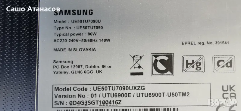 SAMSUNG UE50TU7090U с дефектна матрица ,BN96-51826K ,WDN221M ,CY-GT050HGCV3V → Обява 49107689