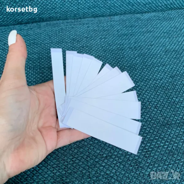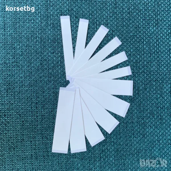 Комплектът включва 12 прозрачни самозалепващи ленти с дължина 8.5 см: