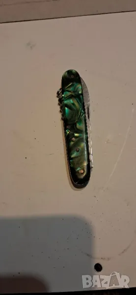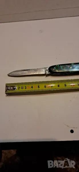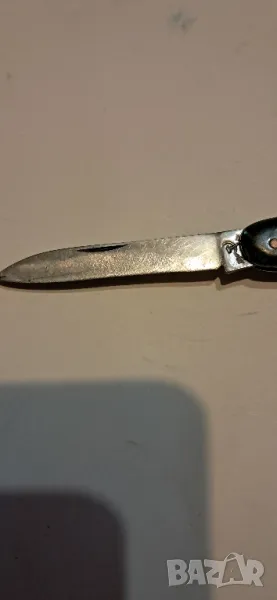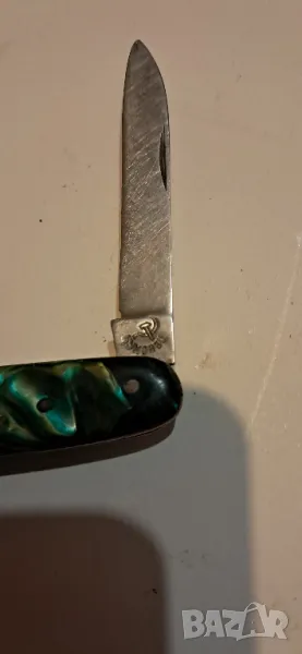 Стара сгъваема Бг.ножка, състояние видно на снимките запазена, има лек луфт на острието.