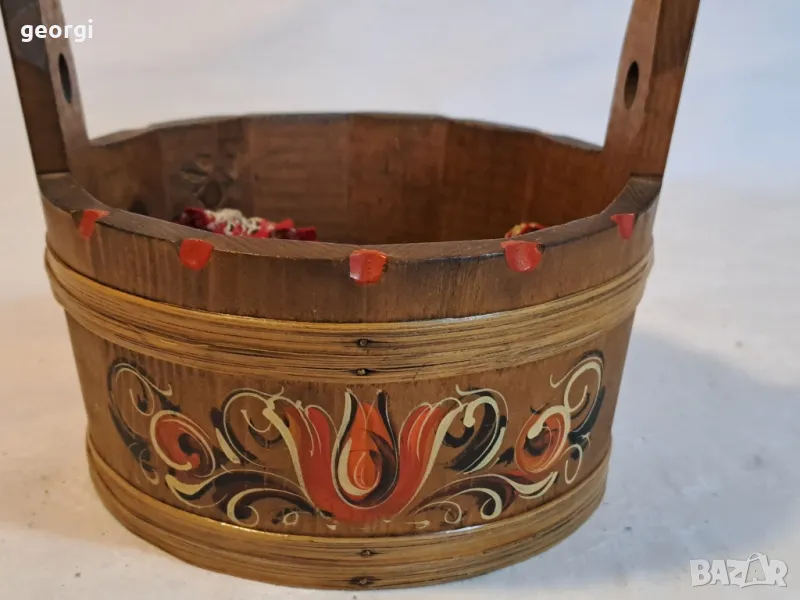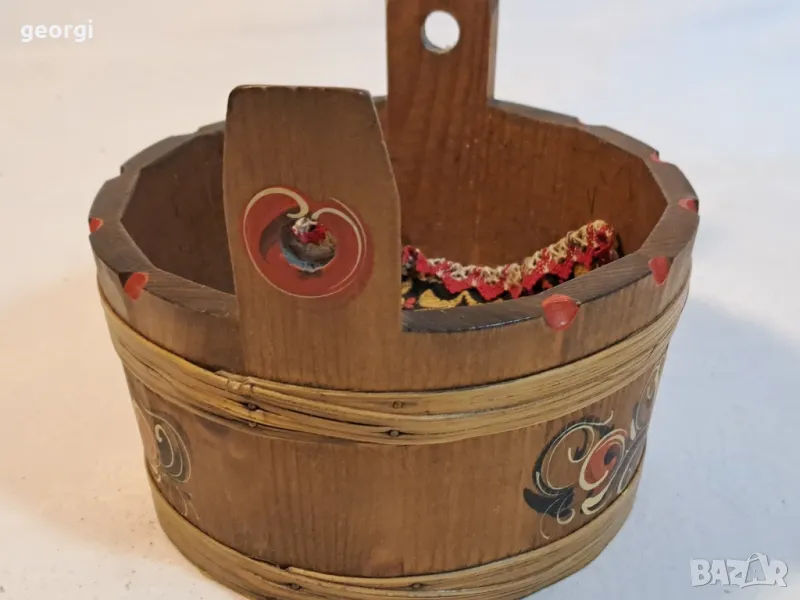дървено ръчноизрисувано ведро панер 20/1 → Обява 49109030