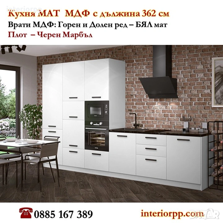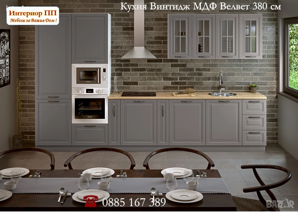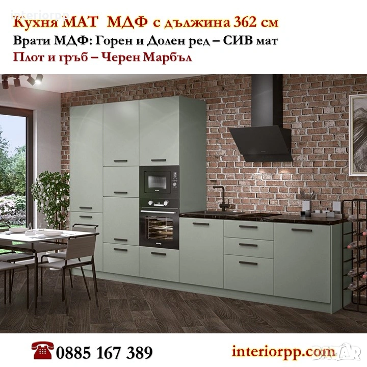 Кухня Мат МДФ 362см - СИВ мат от модулни шкафове.Безплатна консултация