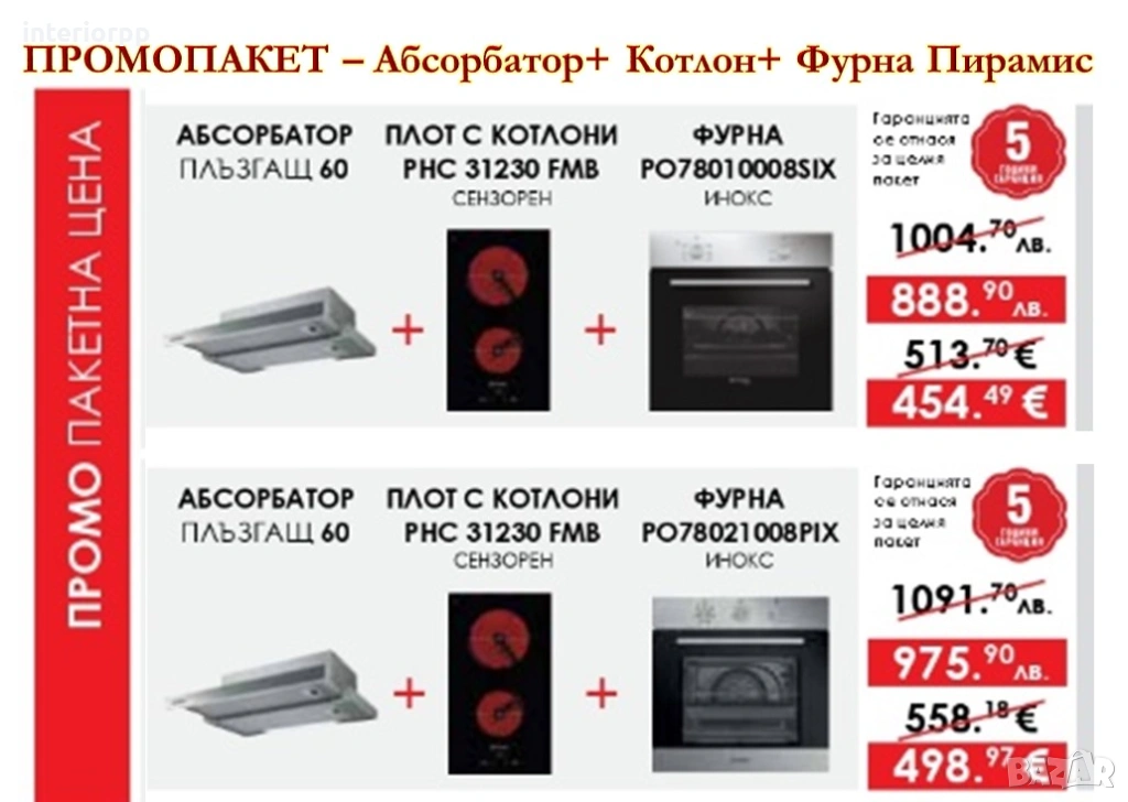 В цените не са включени ел.уреди, мивки , смесители и аксесоари.