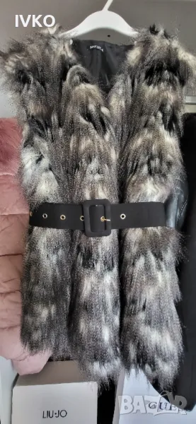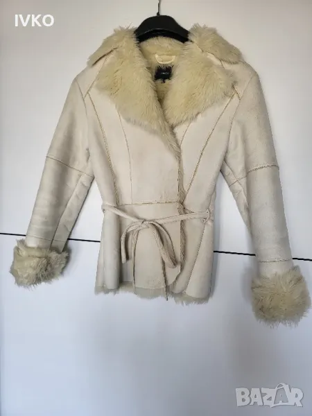 5.Палто Lindex ,еко кожа и косъм, закупено от Швеция.Размер по етикет S. Поставени са допълнителни кукички от вътрешната страна за вталяване, освен колана. Отстраняват се без проблем. Дължина-61см.,до косъма, Дължина ръкав-53см.,ГО-50см.,ханш-53см.