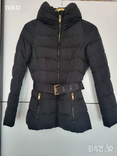 11. Зимно яке ZARA, черен цвят, с пълнеж от естествен пух, р-р S, с висока яка. Колан, ципове в златисто.- 45лв.