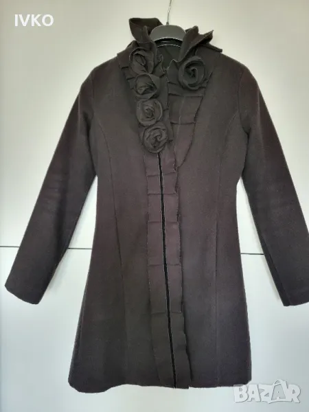 6.Черно палто с атрактивна яка в черен цвят, втален модел, твърдо xs размер.20% вълна,80% полиамид., 45лв.