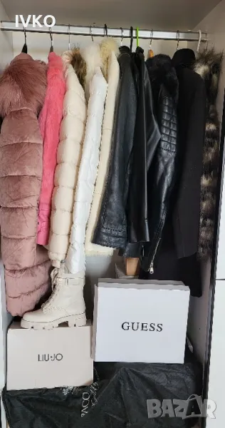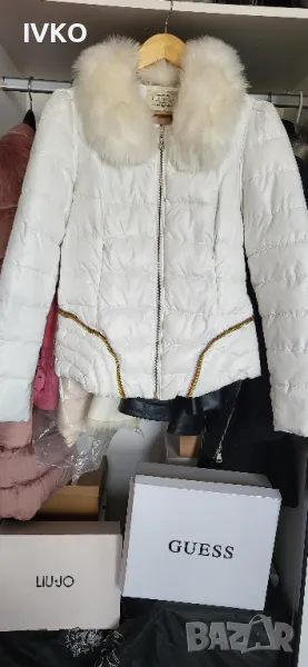 4.Чудесен модел яке в бял цвят,размер S/M. Сваляща се яка от еко пух, акцент ципове в розово и сигнално зелено.Без забележки- 70лв.
