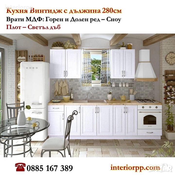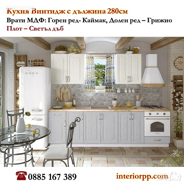 Кухни Винтидж МДФ 280см от модулни шкафове. Безплатен проект за Вас