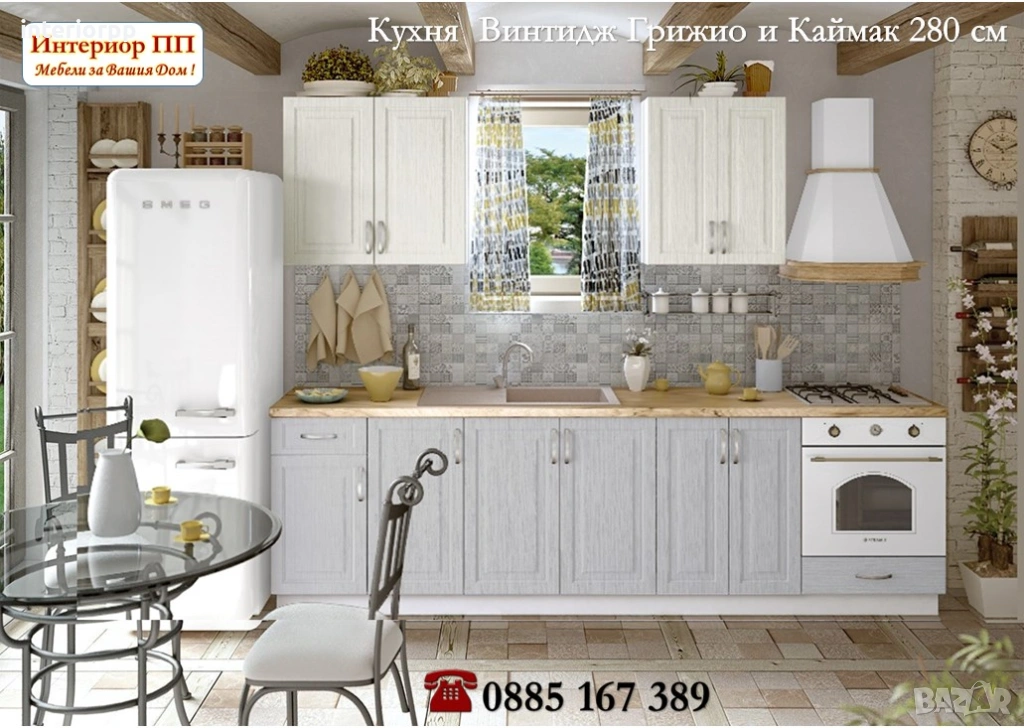 *Цената на кухненски шкафове Винтидж в тази композиция с размери 280 см е 611.50 €