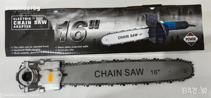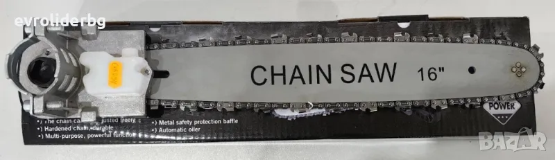 - Шина и верига с работна дължина 16"- 400мм. Цялата дължина на приставката е 550мм.