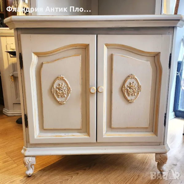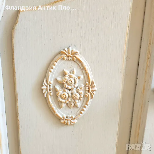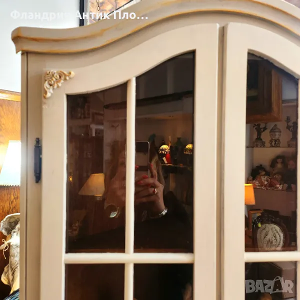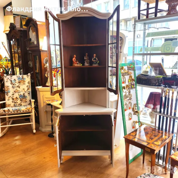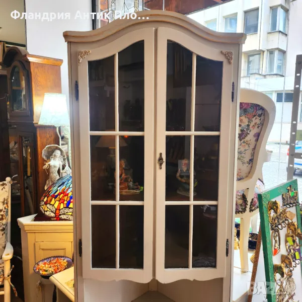 Прекрасно съчетание между функционалност и изтънчена естетика! Този ъглов шкаф е стилно решение за всяко помещение, което се нуждае от допълнително място за съхранение без да заема много пространство. Разполага с витринна горна част с елегантни стъклени вратички, както и долен шкаф за дискретно прибиране на вещи. Фините декоративни орнаменти и неутралният кремав цвят му придават романтично излъчване, което се вписва прекрасно в интериори с винтидж, класически или провинциален стил.