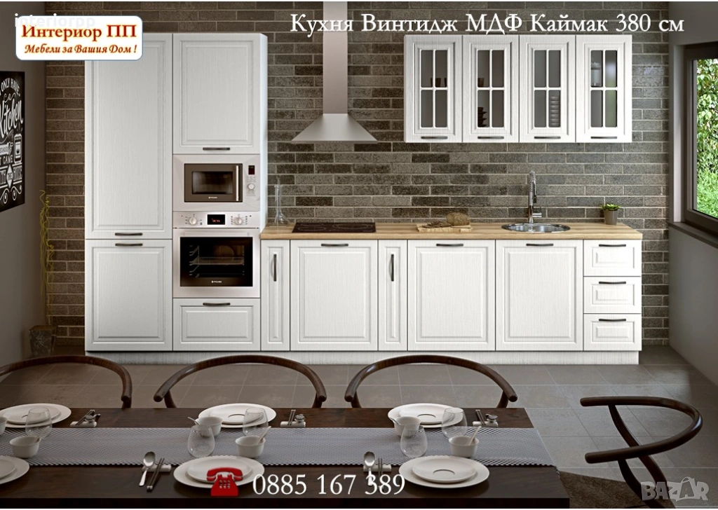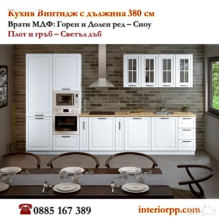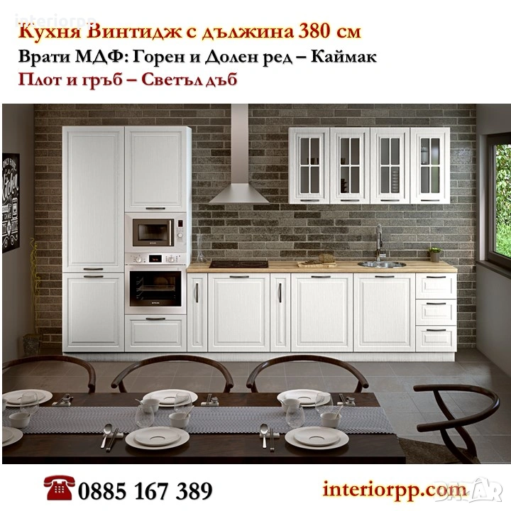 *Цената на кухненски шкафове Винтидж в тази композиция с размери 380см е 1168.30 €