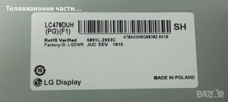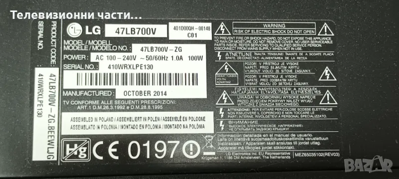 LG 47LB700V-ZG със счупен екран LC470DUH(PG)(F1)/EAX65384004(1.5) EBT62800409 EBR78309004 LC/LD/LE42