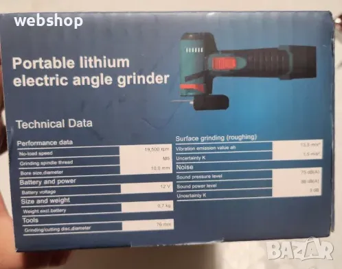 Мини Акумулаторен ъглошлайф 12V , мощност 750W, 19500 rpm