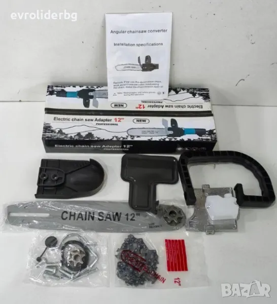 - Шина и верига с работна дължина 12"- 300мм. Цялата дължина на приставката е 350мм.
