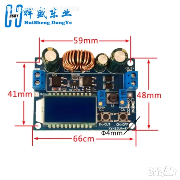 1. Модулът има два бутона IN/OUT, ON/OFF: бутонът IN/OUT се използва за превключване на дисплея на входното напрежение и изходното напрежение, продължително натискане за превключване на изходния ток на изходната мощност; Контролният изход на бутона ON / OFF е ON или OFF, продължително натискане на настройката Изходното състояние по подразбиране на включването е ON или OFF.