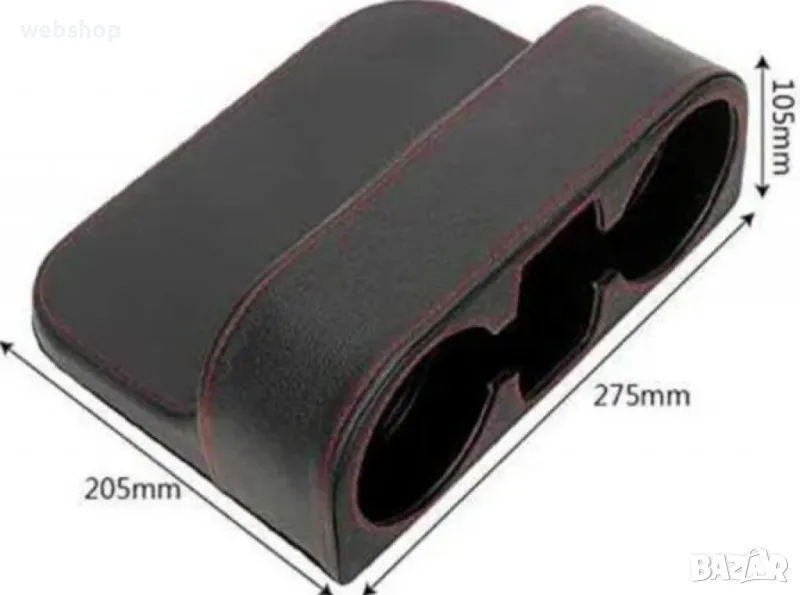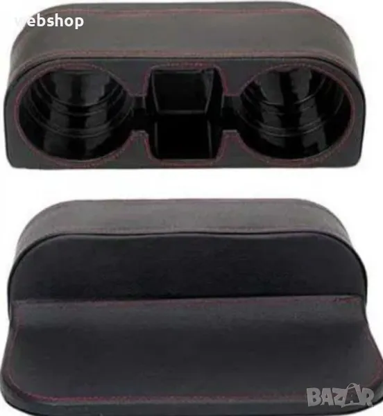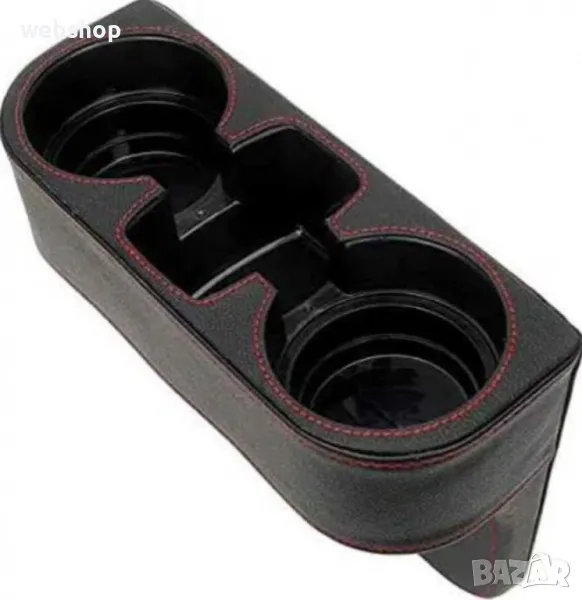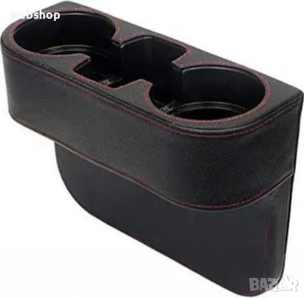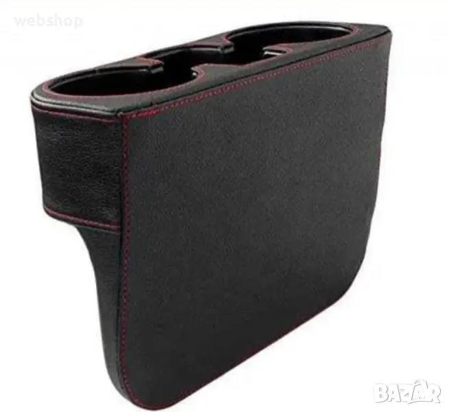 Кожен органайзер за автомобил поставка за чаши, Черен с червен конец