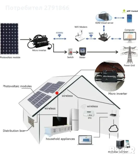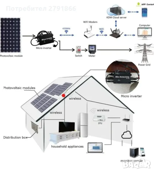 - Лесна инсталация: микро инверторът може да се монтира директно зад модула или върху скоба, за да се опрости поддръжката на потребителя.