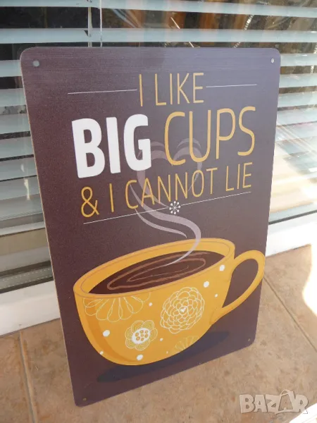 Метална ламаринена табела - I like big cups & i cannot lie.