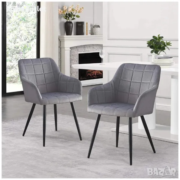 Трапезни столове с кадифена тапицерия, к-т от 2бр - C-UDC066GY → Обява 49112518