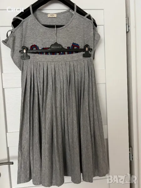 Спортен сер плисирана пола с тениска памучни размер на полата талия 41 см дължина 86см . Трниската е с гръдна 55см дължина 60см
